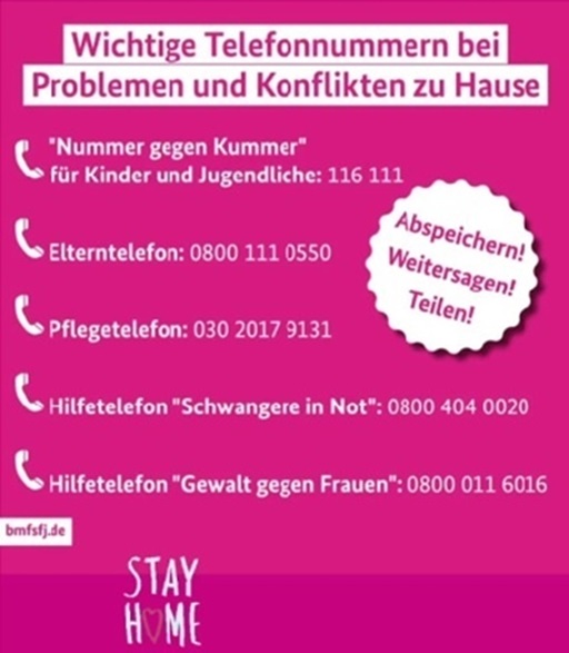 Tel: +49 800 111 0 333 (Kinder Kummertelefon, bundesweit)